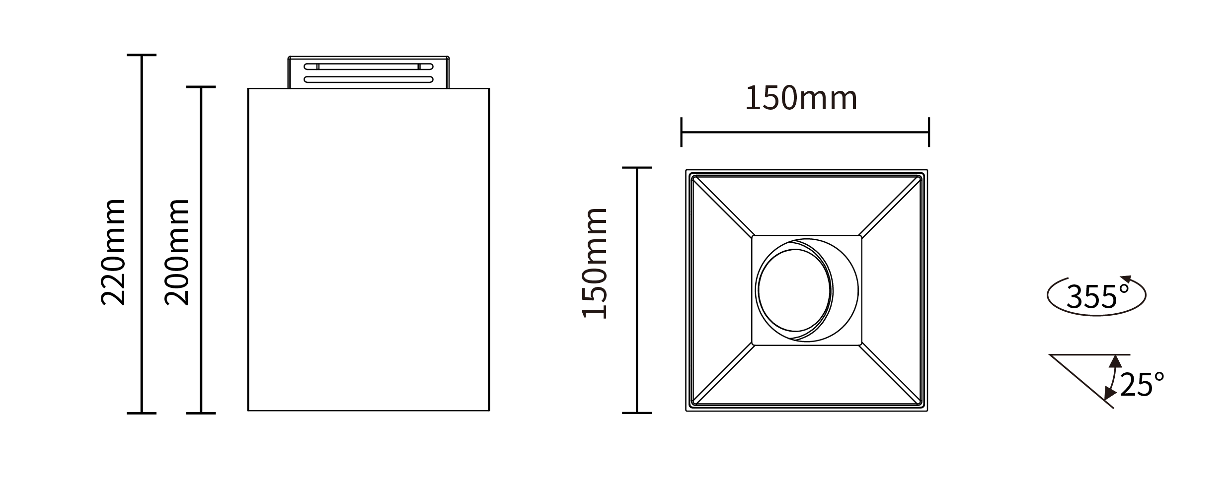- Type:Adjustable Surface-mounted Square Downlight