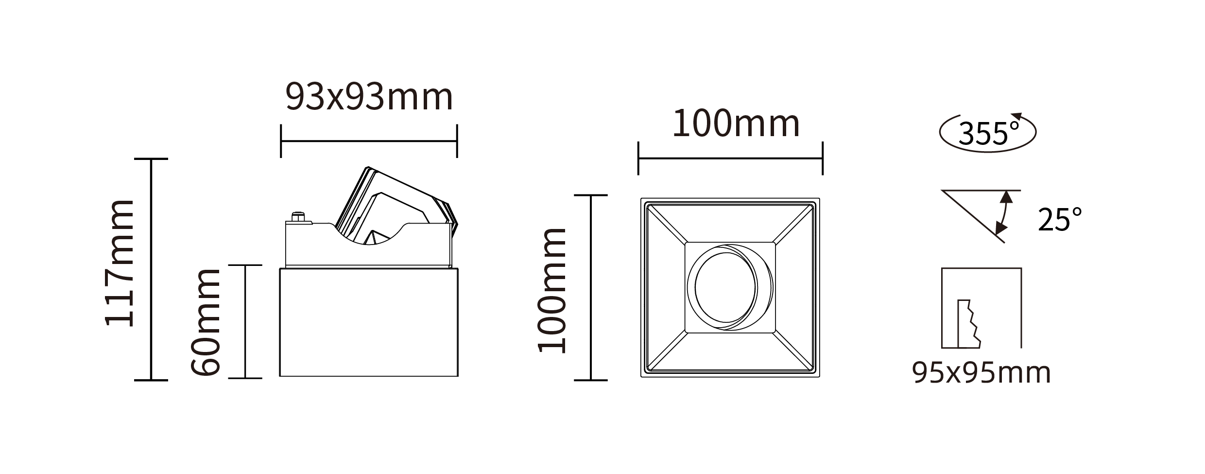 - Cut-Out:95x95 mm