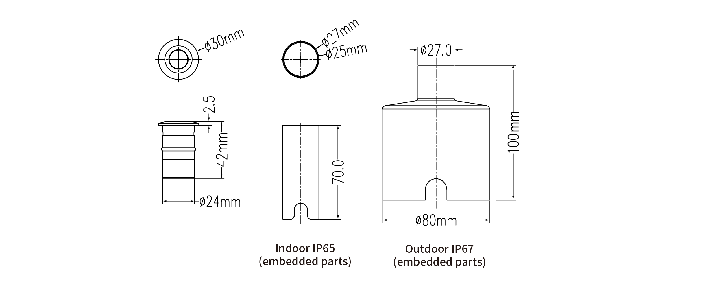 - Embedded Part Dimension:φ27x70mm/φ80x100mm