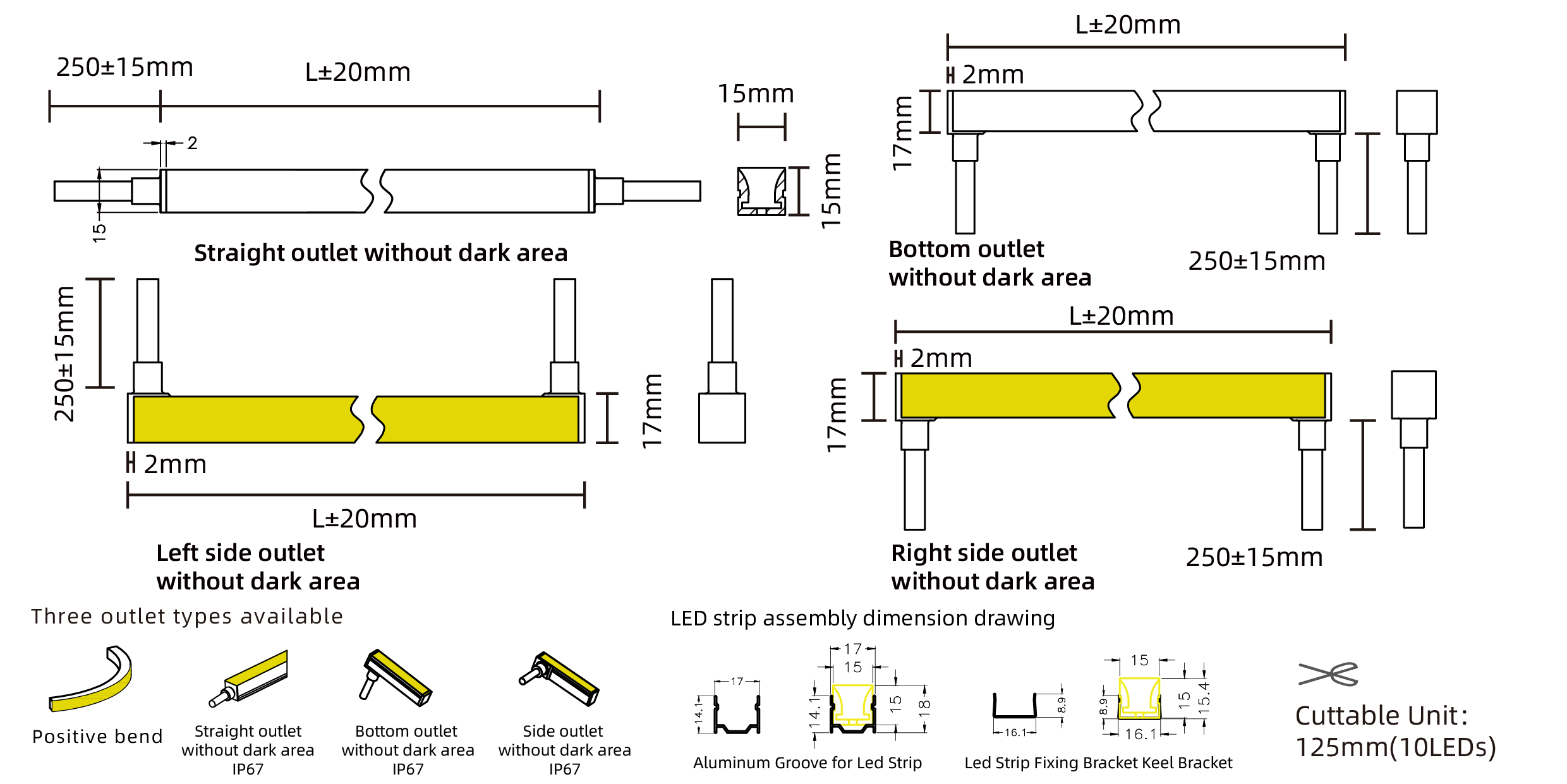 - Type:15x15 positive bend RGBW neon strip light (8 segment per meter)