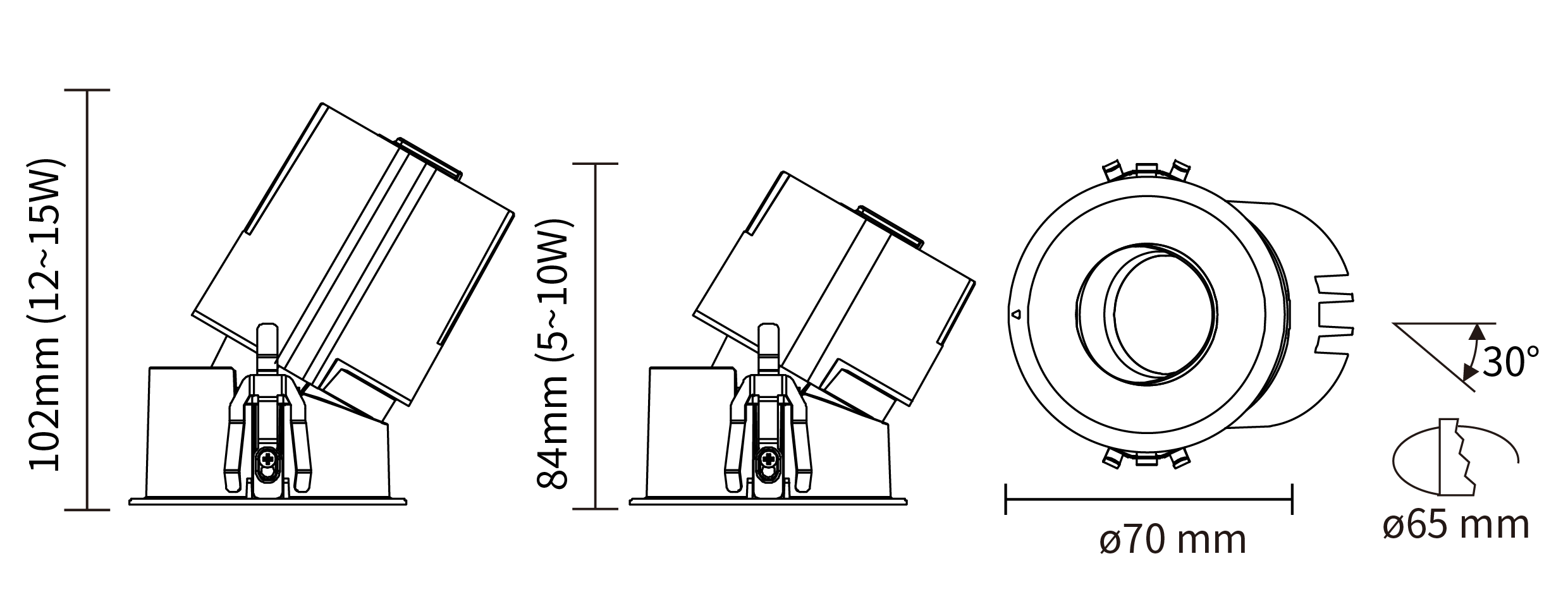 Through the clever and ultra-thin design of adjustable lamps, and the minimum height of lamps is controlled in the range of 75 mm. In satisfying the inside height 80 mm under ceiling, it maximally saves the indoor space. And in view of the small size light's new spring design, under the condition of meet the polarization of 30 degrees, it can effectively solve the problem of installation requirements on thickness 8 ~ 20 mm of ceiling. Design innovation and practicality is presented incisively and vividly in the research and development and application of the LINNOU series downlight.