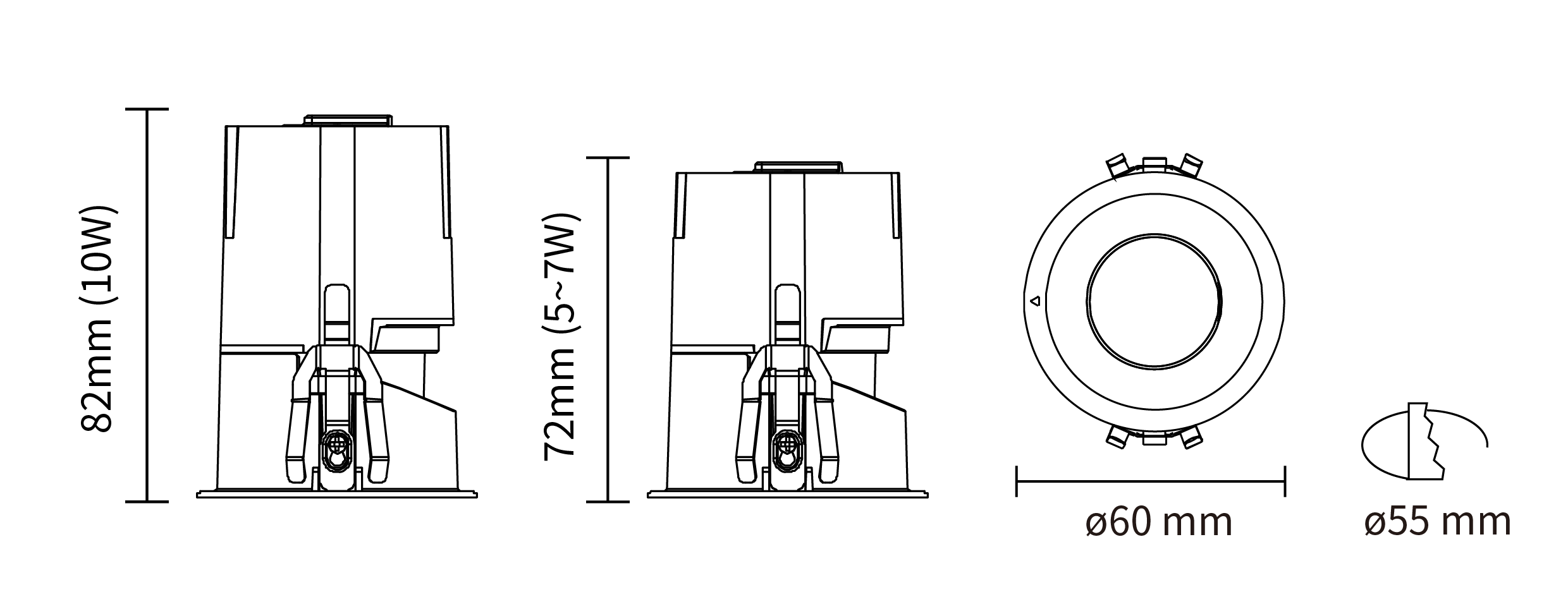 - Cut-Out:ø 55 mm