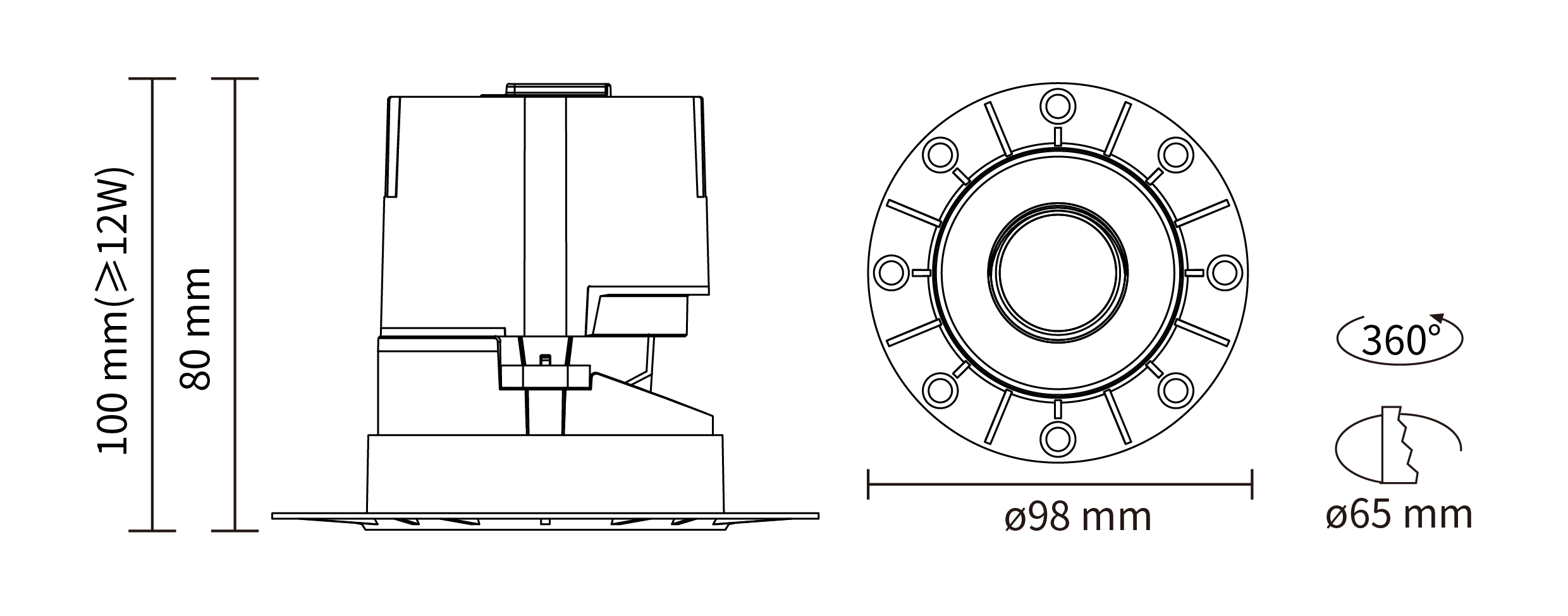 - Type:Round Fixed Trimless Recessed Vanity Downlight