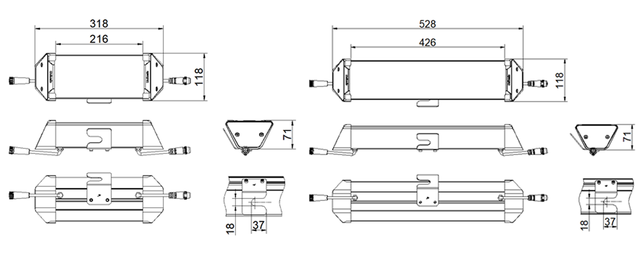 - Product Dimension:①318×118×71mm ②528×118×71