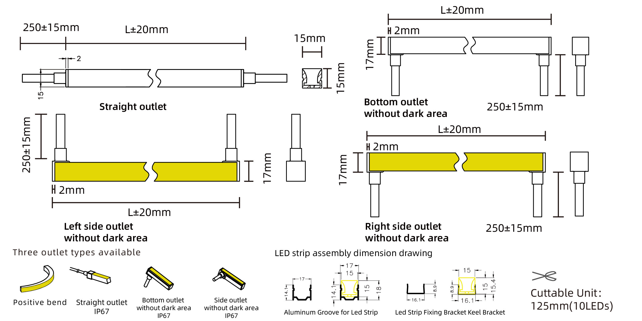 - Type:15x15 positive bend RGBW neon strip light (8 segment per meter)
