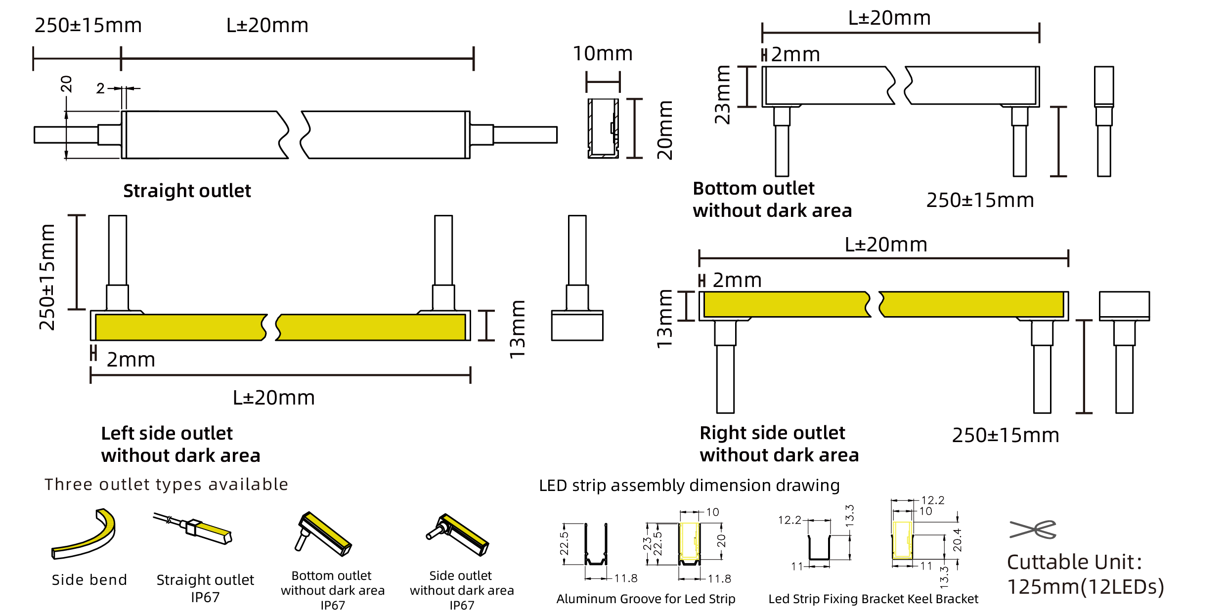 - Type:LED 10X20 single color side bend neon strip(8 segment per meter)