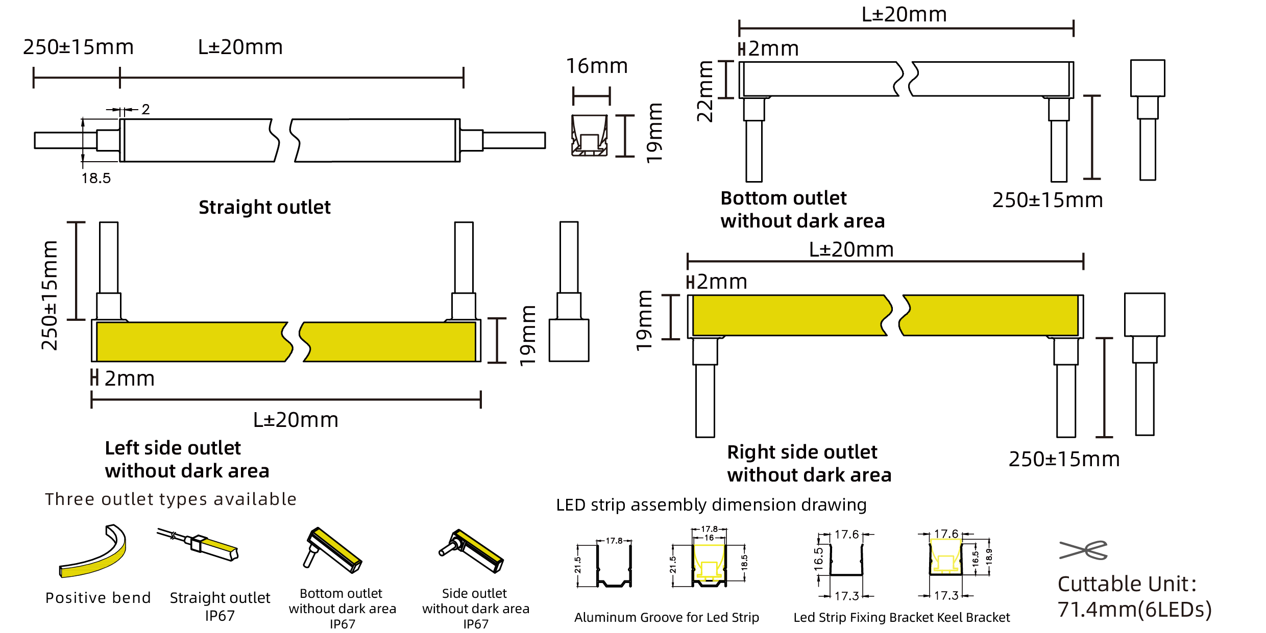 - Type:LED 16X19 Positive Bend RGBW Neon Strip (14 segment per meter)
