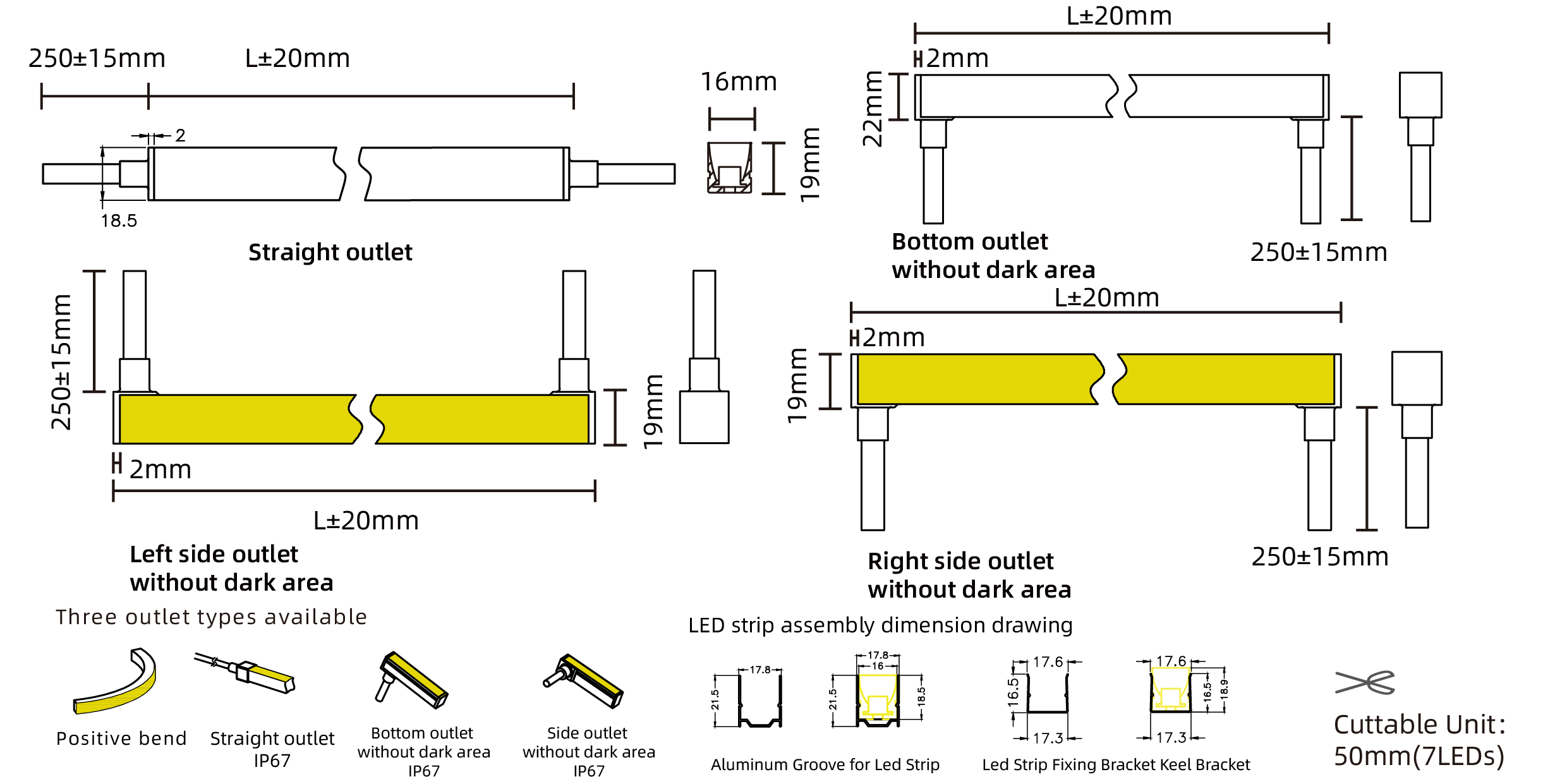 - Type:LED 16X19 High Efficiency Positive Bend Single Color Neon Strip