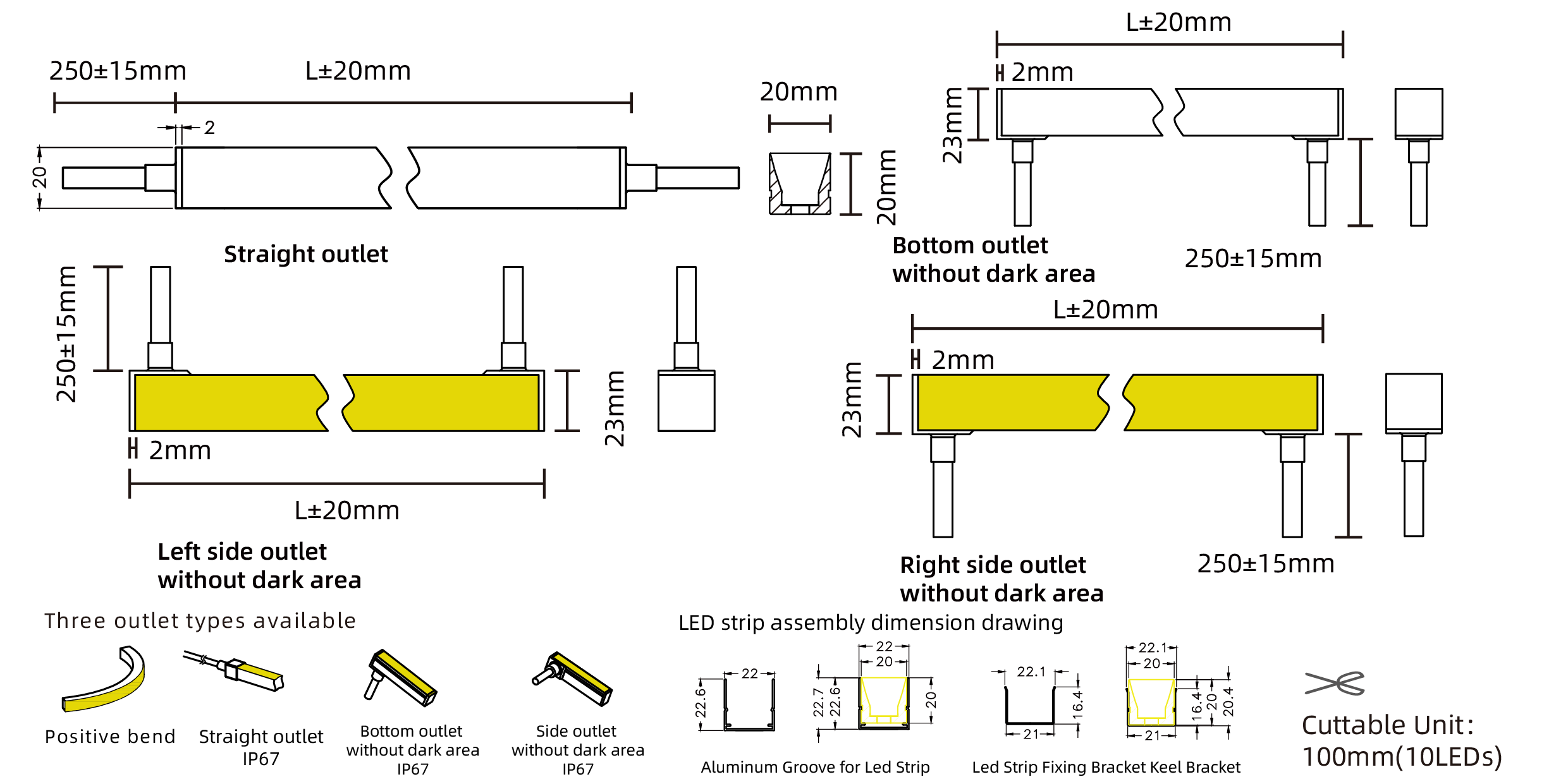 HomeProductsLED StripARKE - LED 20X20 High Efficiency single color positive bend neon strip(10 segment per meter)