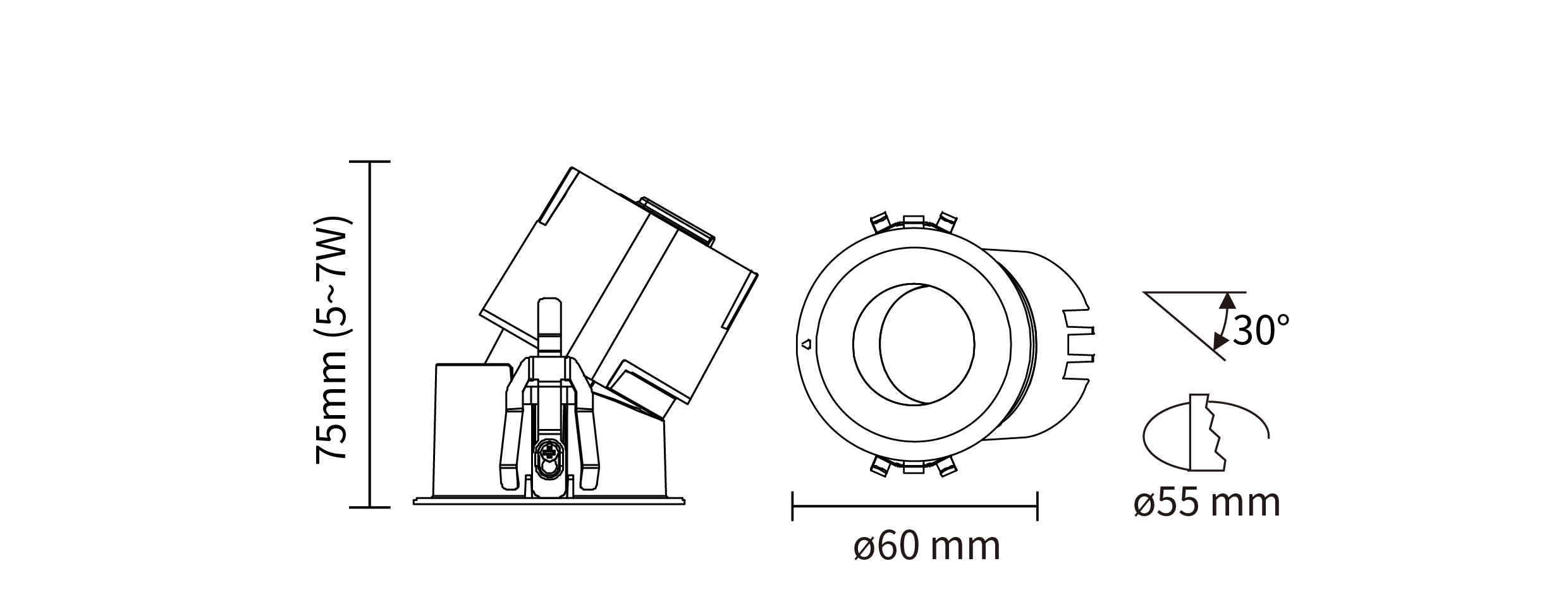 Through the clever and ultra-thin design of adjustable lamps, and the minimum height of lamps is controlled in the range of 75 mm. In satisfying the inside height 80 mm under ceiling, it maximally saves the indoor space. And in view of the small size light's new spring design, under the condition of meet the polarization of 30 degrees, it can effectively solve the problem of installation requirements on thickness 8 ~ 20 mm of ceiling. Design innovation and practicality is presented incisively and vividly in the research and development and application of the LINNOU series downlight.