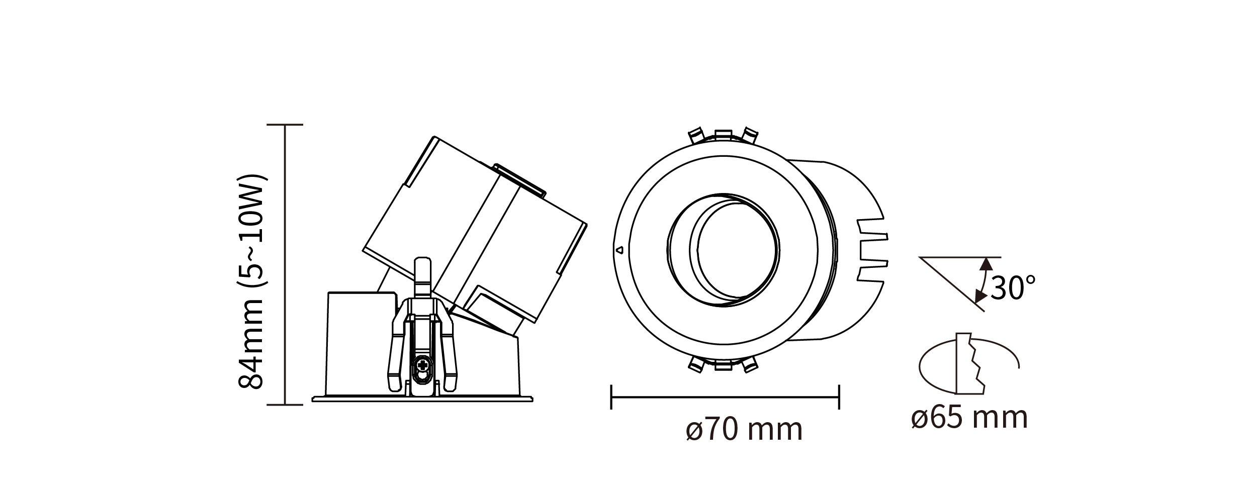 Through the clever and ultra-thin design of adjustable lamps, and the minimum height of lamps is controlled in the range of 75 mm. In satisfying the inside height 80 mm under ceiling, it maximally saves the indoor space. And in view of the small size light's new spring design, under the condition of meet the polarization of 30 degrees, it can effectively solve the problem of installation requirements on thickness 8 ~ 20 mm of ceiling. Design innovation and practicality is presented incisively and vividly in the research and development and application of the LINNOU series downlight.