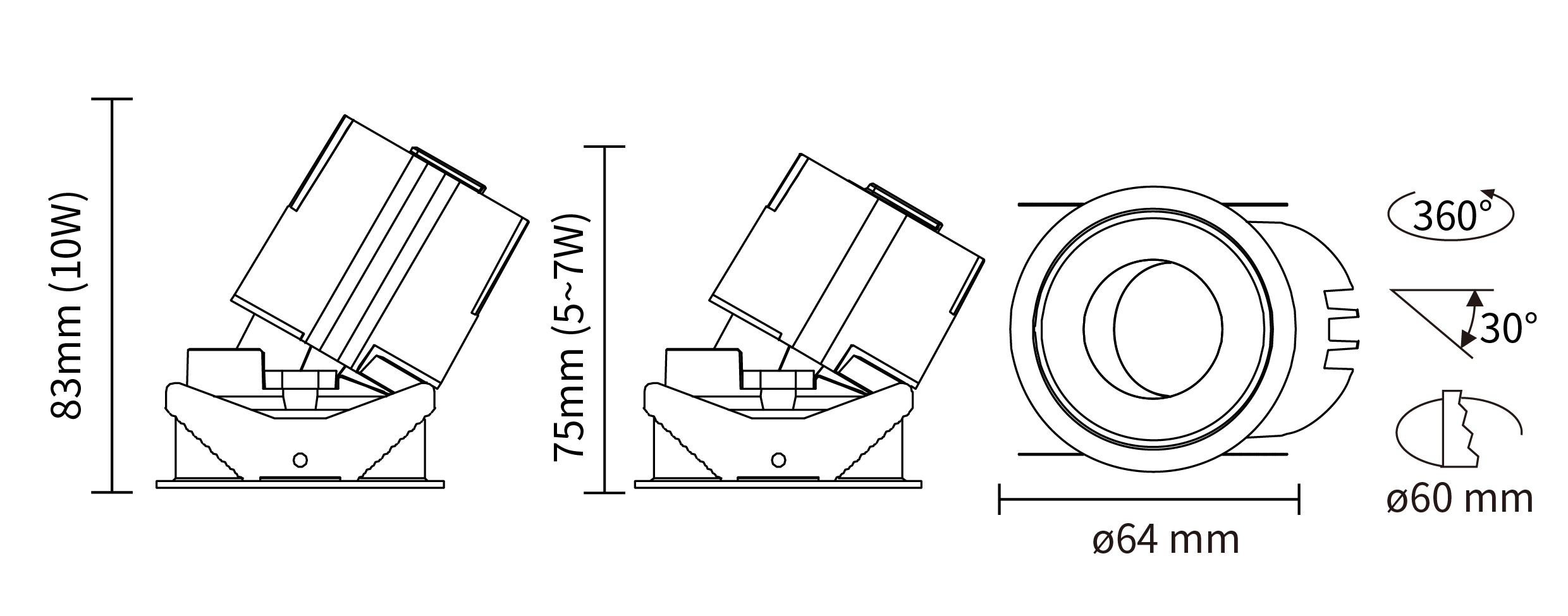 - Cut-Out:ø 60 mm