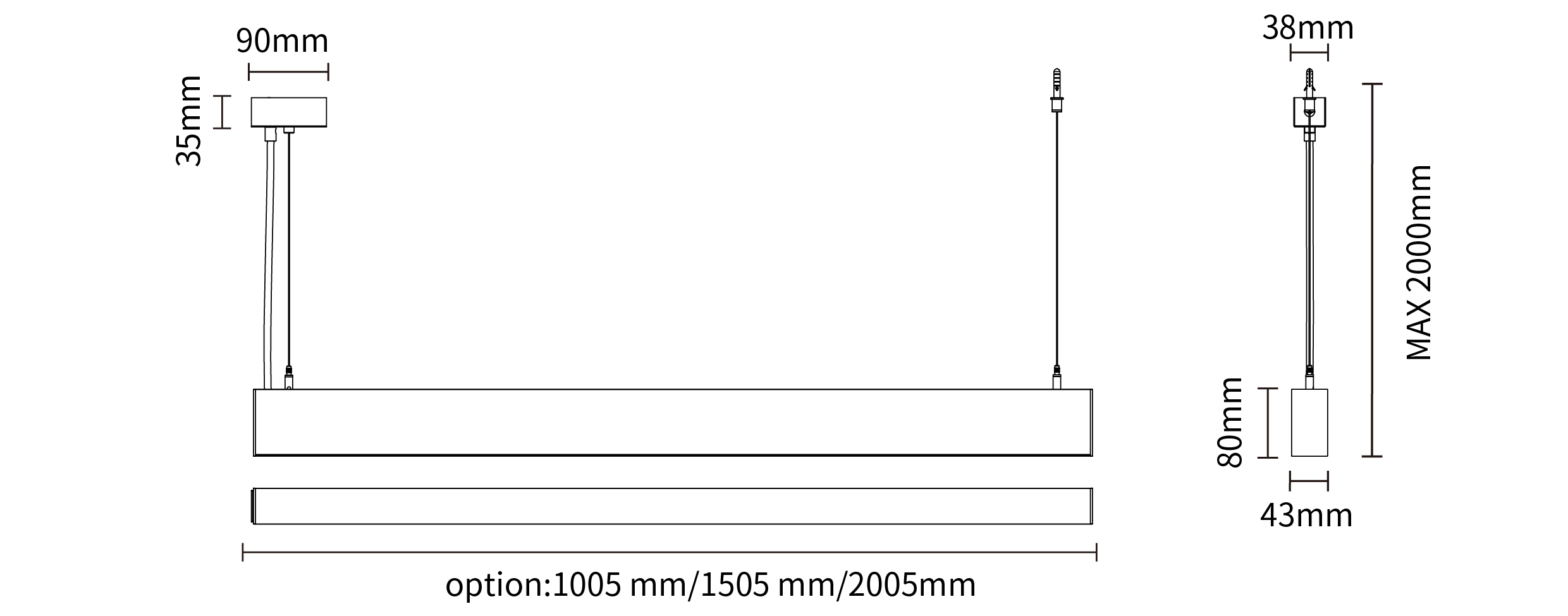 - Type:Suspended Up & Down Linear Light-Frosted stripe cover