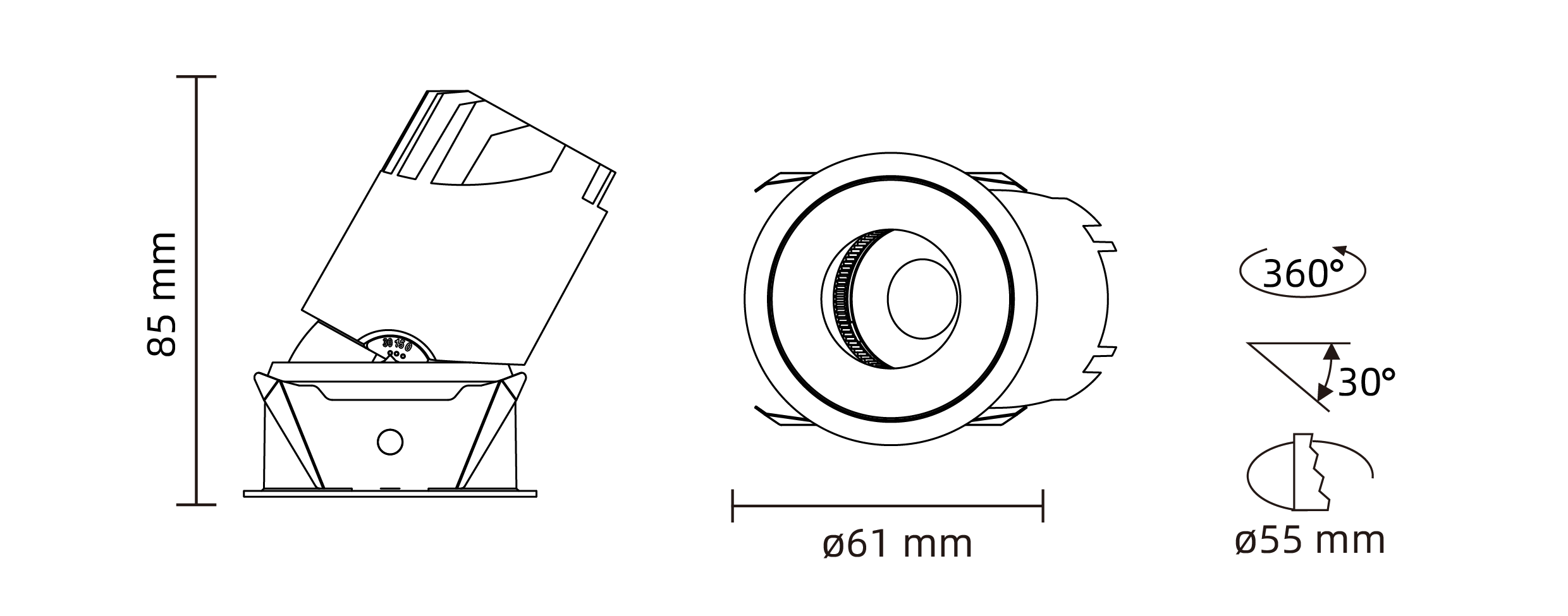 - Cut-Out:ø 55 mm