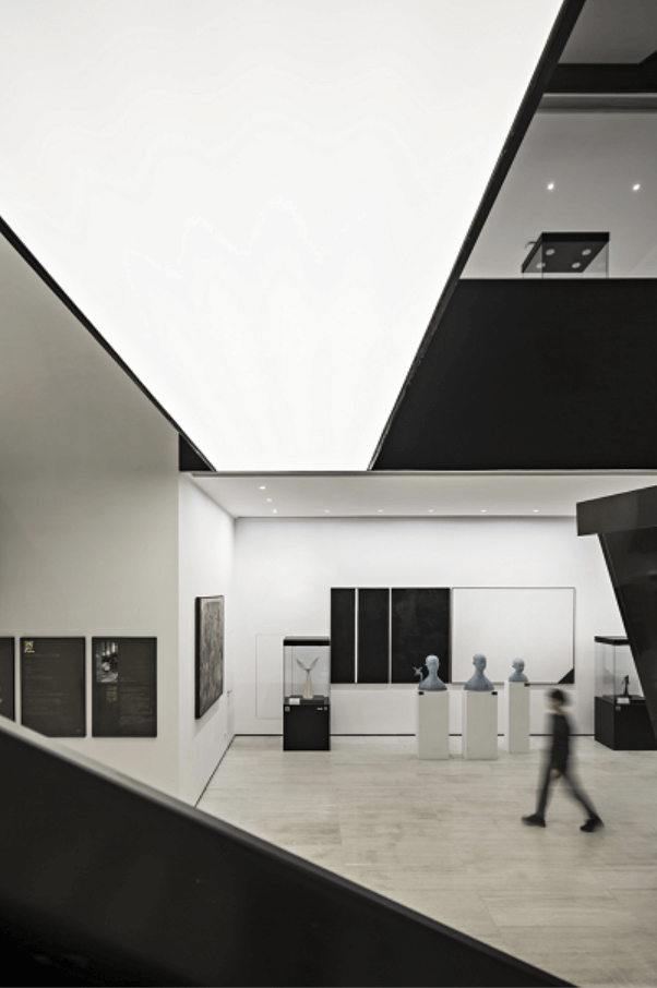 Designer designed a double-height space to exhibit paintings, sculptures and installation art, or provide art education for children, which used staircases to connect different display platforms. The uniform and soft light of the LED module under the white luminous surface enhanced the combination of this white block surface and black brushed stainless steel material. Moreover, VF SILK series wall washer project light over a wide range that extends from the top of the wall to the vicinity of the floor without dark area, which completely shape the sense of volume of the display space. In this interlaced indoor moving line, the small space does not appear narrow and fragmented.