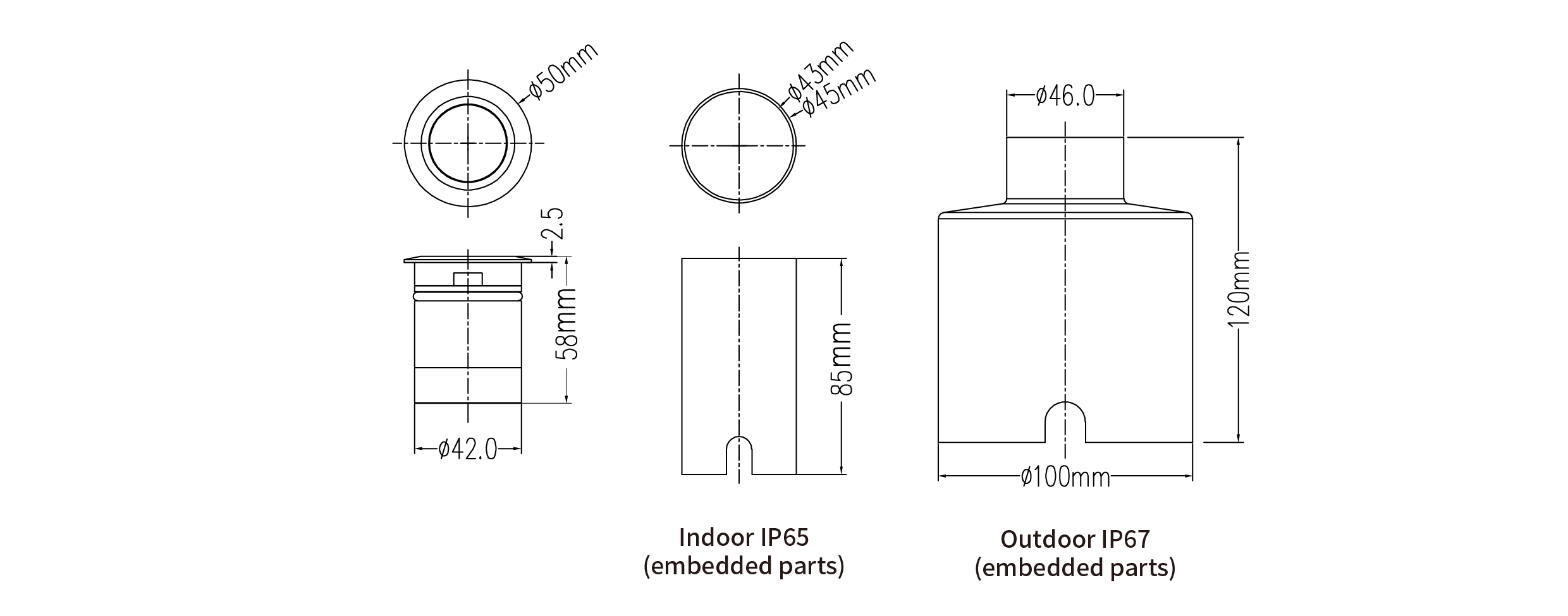 - Embedded Part Dimension:φ45x85mm/φ100x120mm
